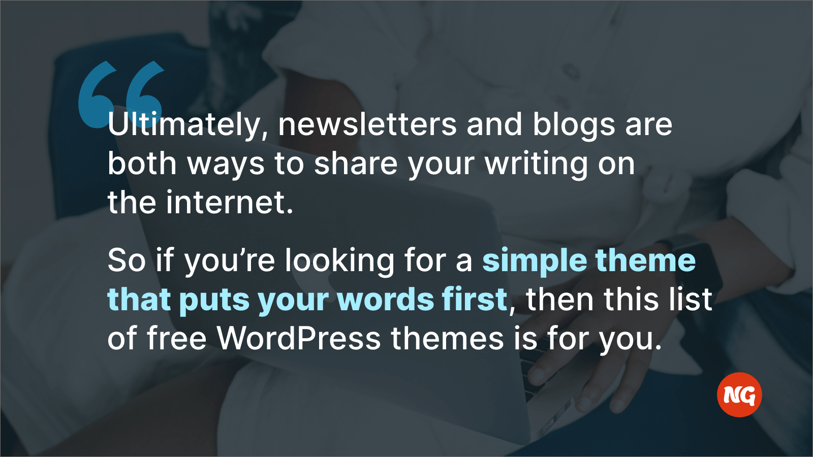 Ultimately, both are ways to share your writing on the internet. So if what you’re looking for is a simple, fuss-free theme that lets you share your writing online, then this list of free newsletter WordPress themes is for you.